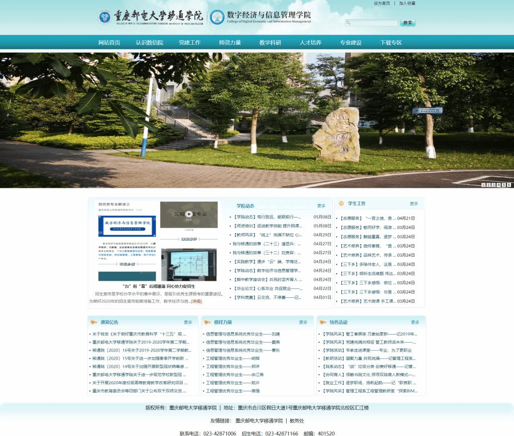 2019年10月,在学校领导的部署和支持下,数字经济与信息管理学院启动了学院网站建设项目。网站项目建设伊始,院长潘显兵高度重视,并做出总体部署,同时指定信息管理教研室王哲老师作为本次网站建设的主要负责人。副院长刘贵容对网站建设提出三点要求:一是规划合理;二是展现优势;三是服务师生。经过数信院全体师生的努力,学院网站于5月份正式发布上线运行。