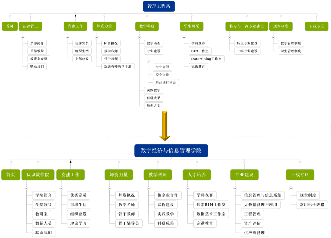 为促进专业教育与完满教育有机融合,提高本科生学业水平与实践能力,促进学生成长和全面发展,数字经济与信息管理学院信息管理教研室以学院网站建设为契机,将学院官网的建设作为实践项目引入教育教学过程中,充分发挥我校学业导师制的育人新模式,网站建设要求全体学业导师参与,并指导学生完成网站的规划、分析、设计与实施。践行“以项目为主线、教师为主导、学生为主体”的育人理念。