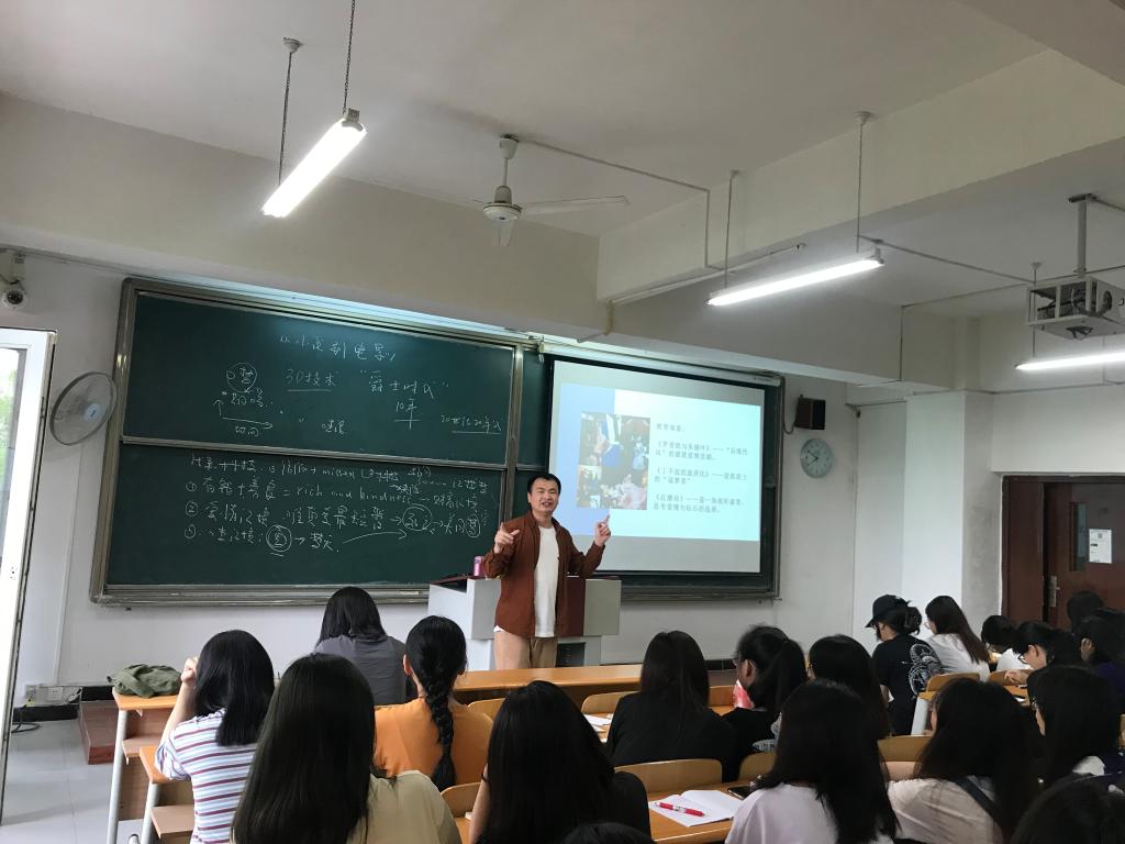 两位老师则分别介绍了小说作者及电影导演风格,王智老师更是从文学角度给同学们介绍了人称叙事与叙事视角的理论知识。通过讨论,同学们也活学活用,逐步理解了作家菲茨杰拉德之所以要用剧中人物尼克的视角进入故事,是因为故事中需要一种道德评判的视角来表现这一时代的文化特征。