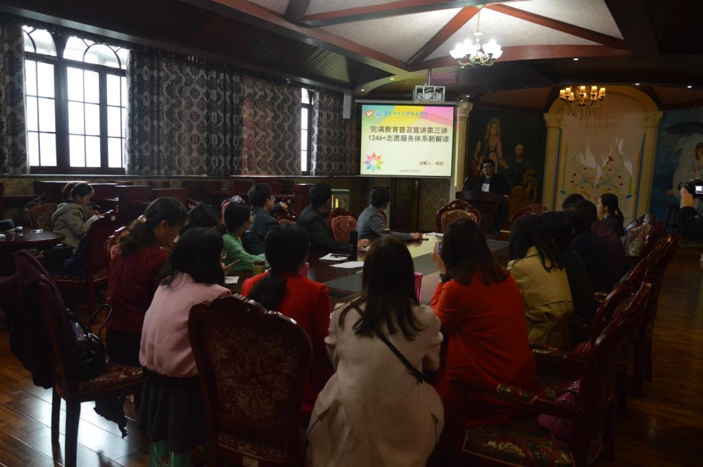 为完善管理工程系完满教育志愿服务体系,促进系内师生更好地认知志愿服务、共同参与志愿服务,管理工程系于2018年11月7日下午四时,在第二实验楼英美村举行了管理工程系完满教育普及宣讲第三讲——志愿服务专项体系新解读。本次宣讲活动的主讲人为管理工程系副主任杨凯老师,出席本次会议的还有管理工程系系主任林毅老师及全体教师。