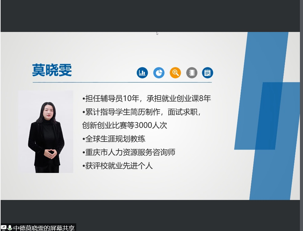 “暑期就业服务依然不打烊”。为提高我校学子应聘求职能力,2022年7月20日10:00,由就业创业指导与服务中心主办的“了解招聘需求,收获心仪offer”——第125期就业沙龙活动在线上进行。本期活动邀请到我校创新创业导师库成员莫晓雯老师。