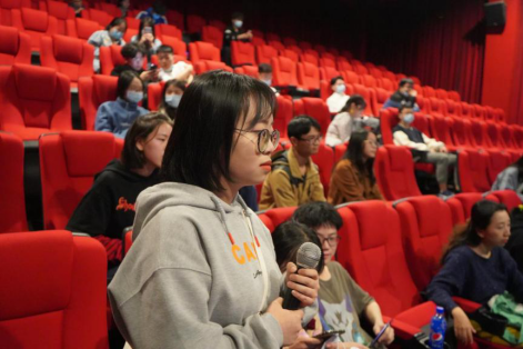放映结束后,现场掌声雷动。电影主创李骥老师从幕后来到台前,与师生们进行现场互动。作为重庆首部入围上海电影节亚洲新人奖的本土电影,现场师生对小成本作品《白云·苍狗》的幕后故事充满好奇。李骥老师在分享中表示,在电影资金减少、技术门槛降低的大环境下,主创团队始终坚守自身的“电影梦”。因为梦才孕育出了《白云·苍狗》这部小成本电影。电影从组建到筹备,从成立肥象影业到前往北京寻找制作公司,每位主创都在竭力为电影的完美呈现尽一份力。后来却因经费问题不得不重新预算,最终在可控的成本下,组建了一支大部分由重庆本土人员组成的拍摄团队,历时22天的拍摄,最终为观众献上这部有着纪录片气质的文艺片。