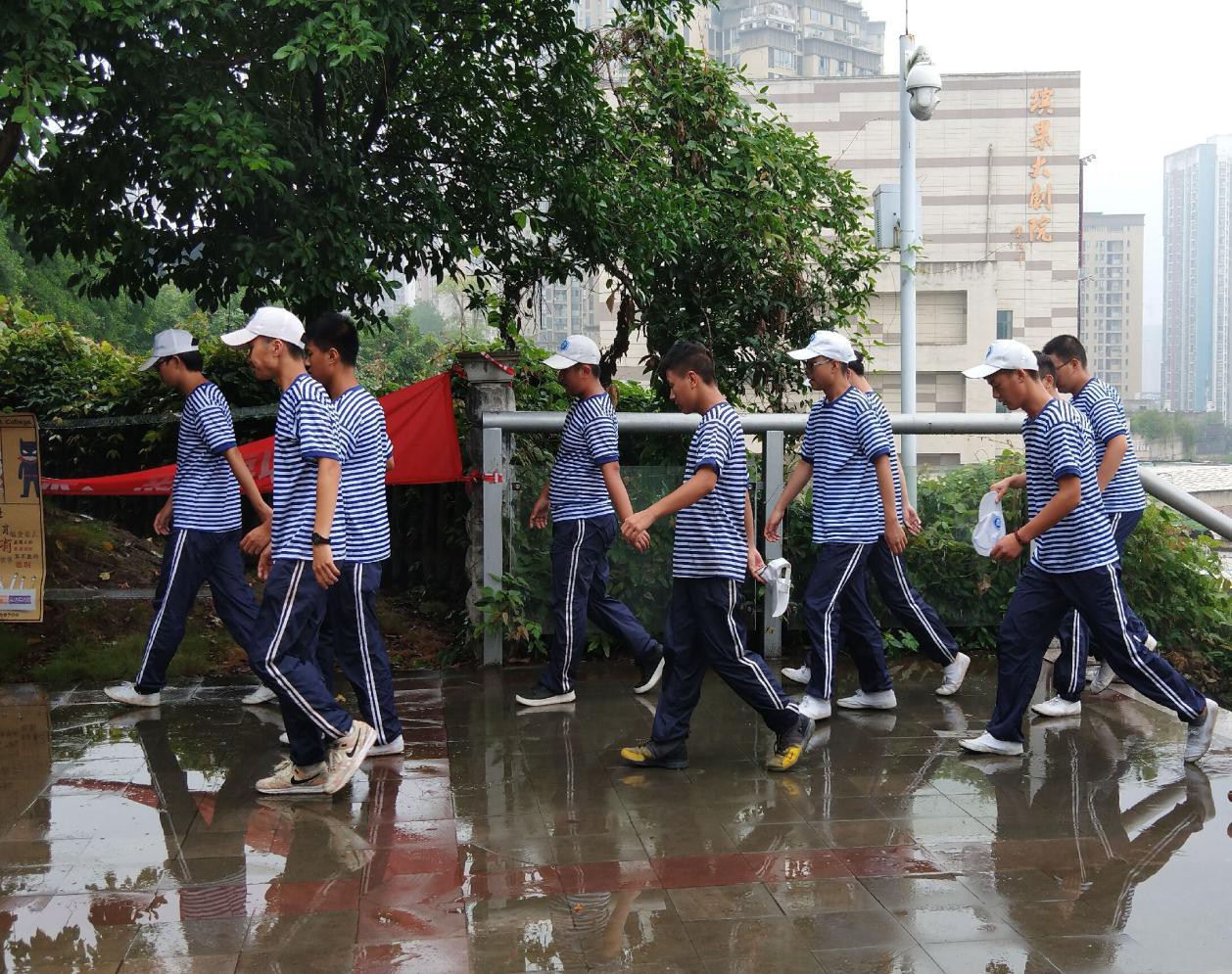 经过一上午的训练,同学们和自己的室友相伴一起回宿舍。