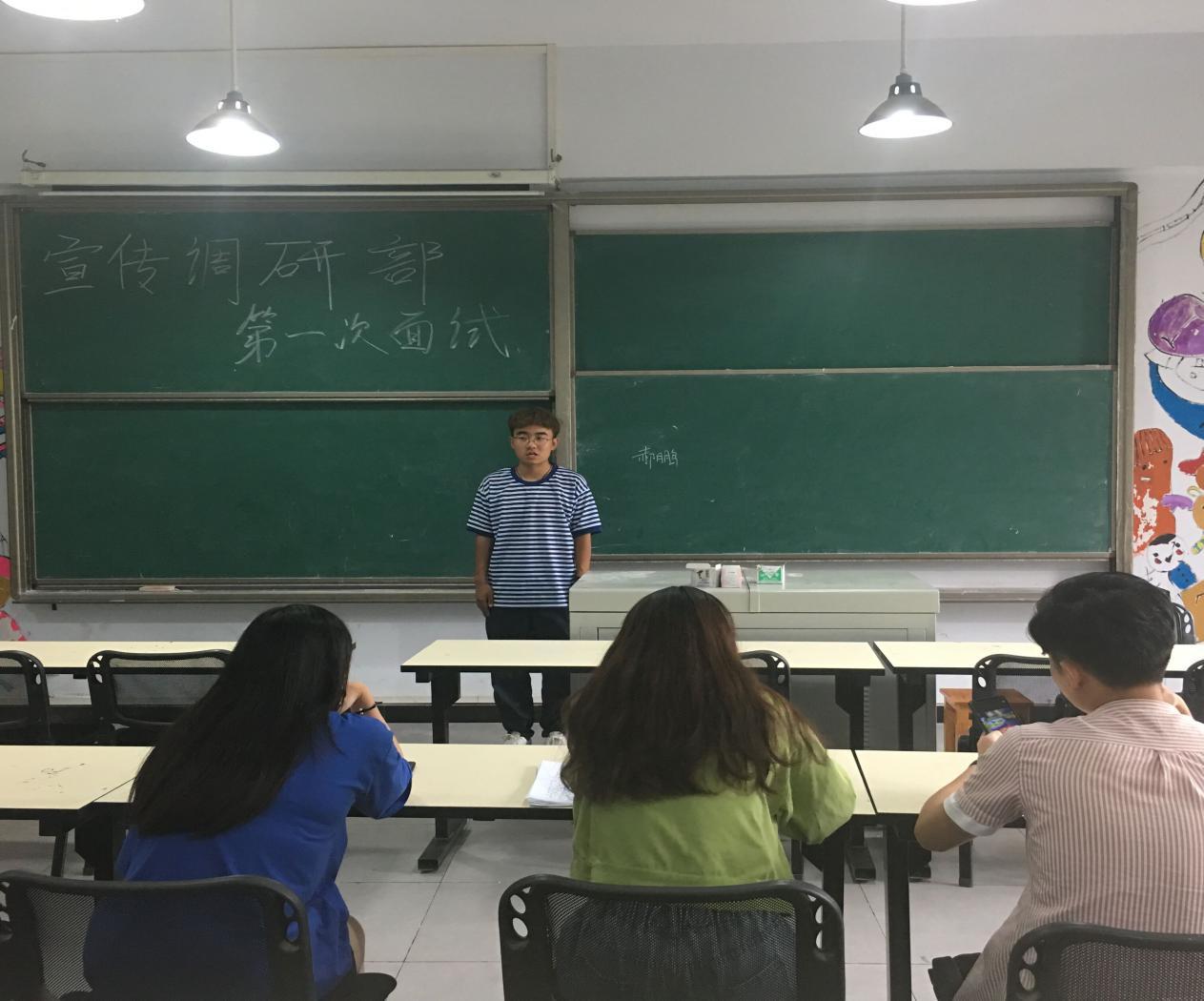 现在正值各大学生组织招新,大一新生赫鹏在结束上午的军训后,参加了艺术传媒学院学生会宣传调研部的面试。
