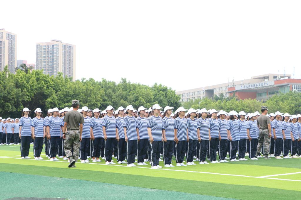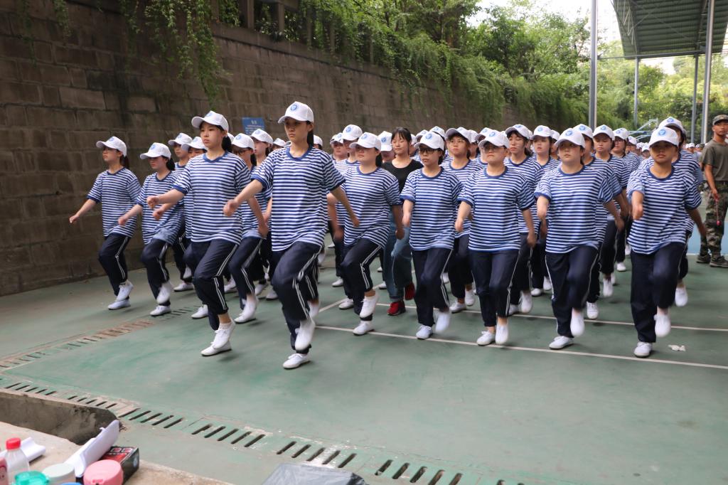 尽管军训期间天气不太好,时常下雨,但同学们依旧坚持军训,从足球场转移到风雨篮球场,经过高耸的天梯,来到拥挤的篮球场,完成了当天的训练任务。
