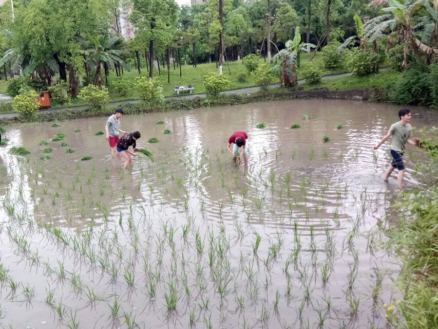 (已经种植完毕的秧苗,承载着同学们丰收的渴望)