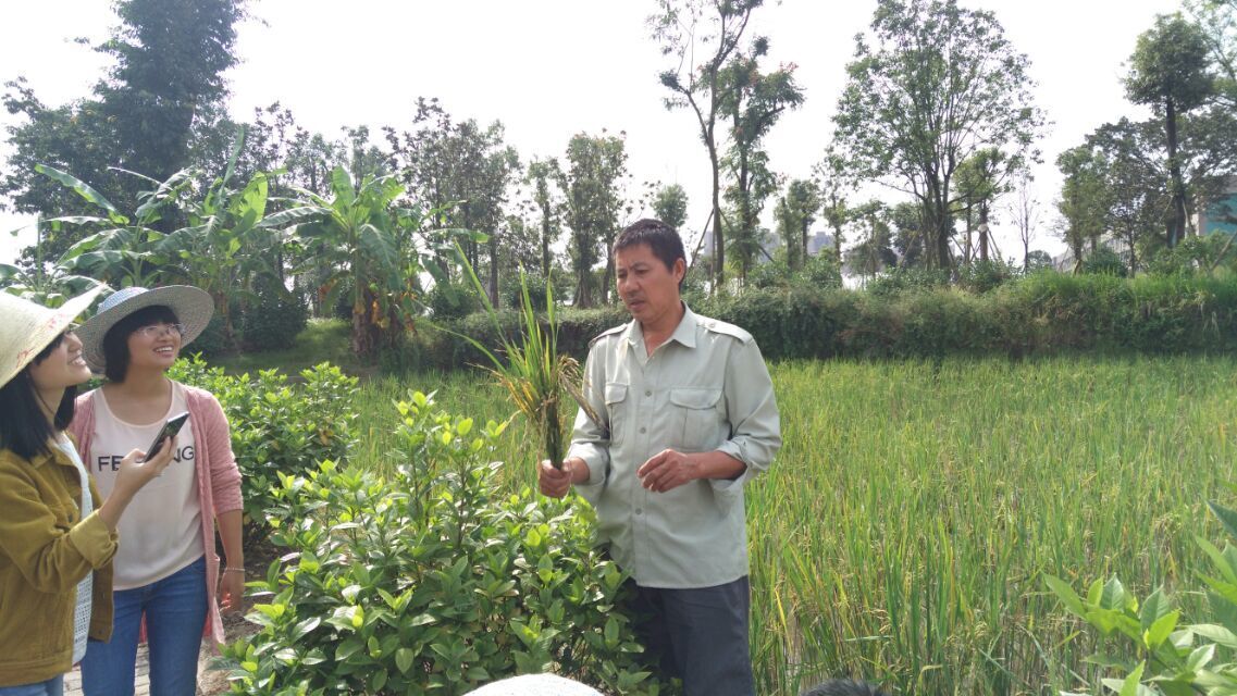 (2017年7月,我们在指导老师的带领下,查看秧苗的生长情况)
