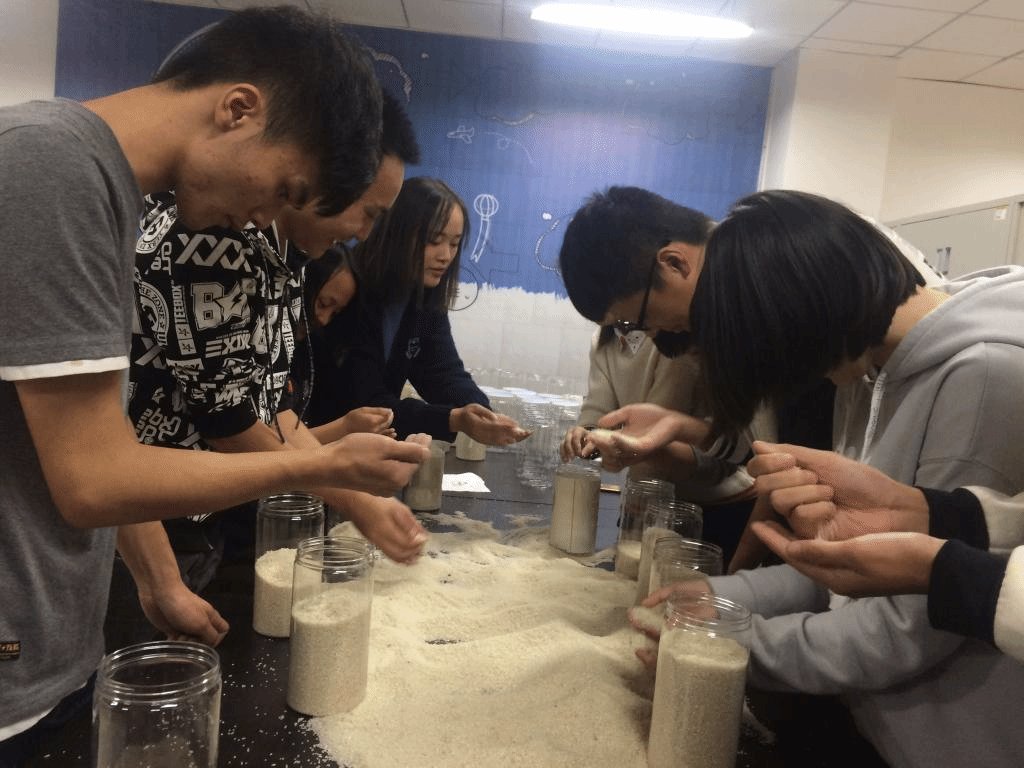 (大家对米粒进行挑选和装瓶密封,共计23瓶精米,19瓶糙米)