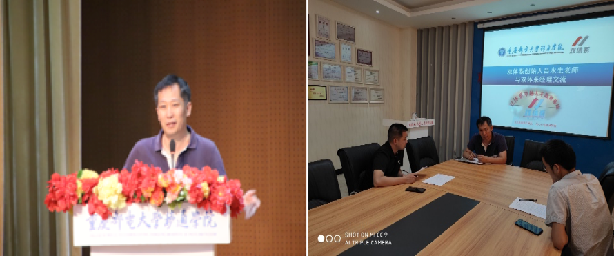 图1 吕永生老师开学典礼致辞、与双体系经理交流