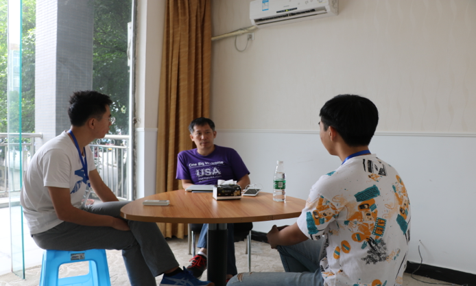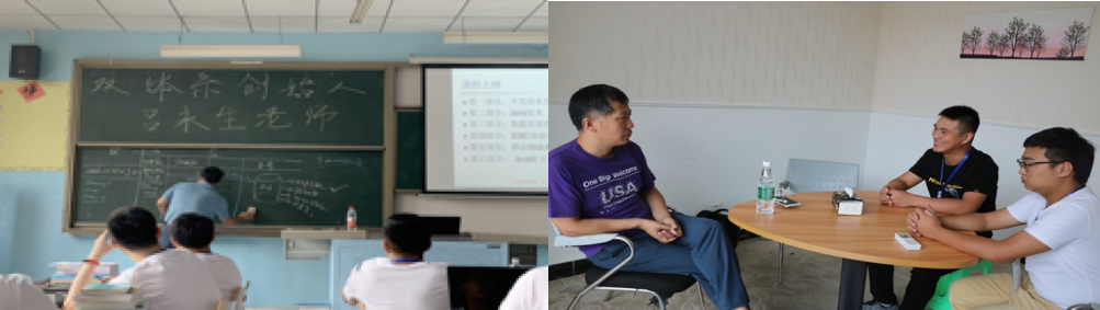 9 月3日9:00,吕老师与技术老师在双体系会议室针对教学课程体系设置与优化、双体学员学习与培养等问题进行了交流。此外吕老师还与双体系新进技术教师刘川老师进行了交流。他认为,随着90后甚至00后的新鲜血液注入双体,双体教师更应该与时俱进,不断更新自己的教学方法,用创新有趣的方式教学,这样才有助于学生的成长与发展。