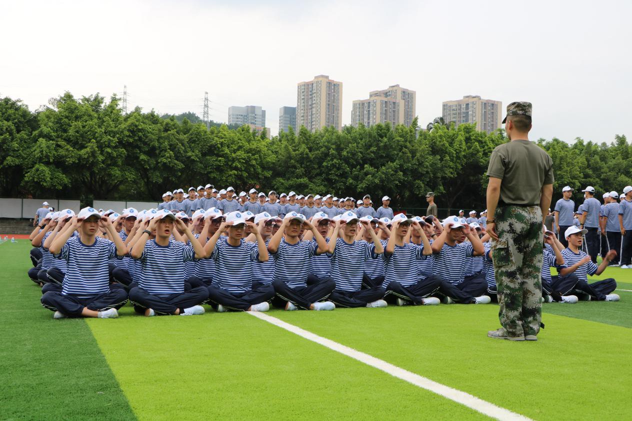 教官在检验同学们脱帽动作的整齐度与流畅度。经过多次的训练,同学们的脱帽动作达到了一致,达到了教官的要求。
