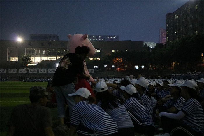 学生社团联合会还带来了小猪佩奇的人偶,一刹那吸引了同学们关注,开始了激烈讨论,憧憬着军训后丰富多彩的大学生活。
