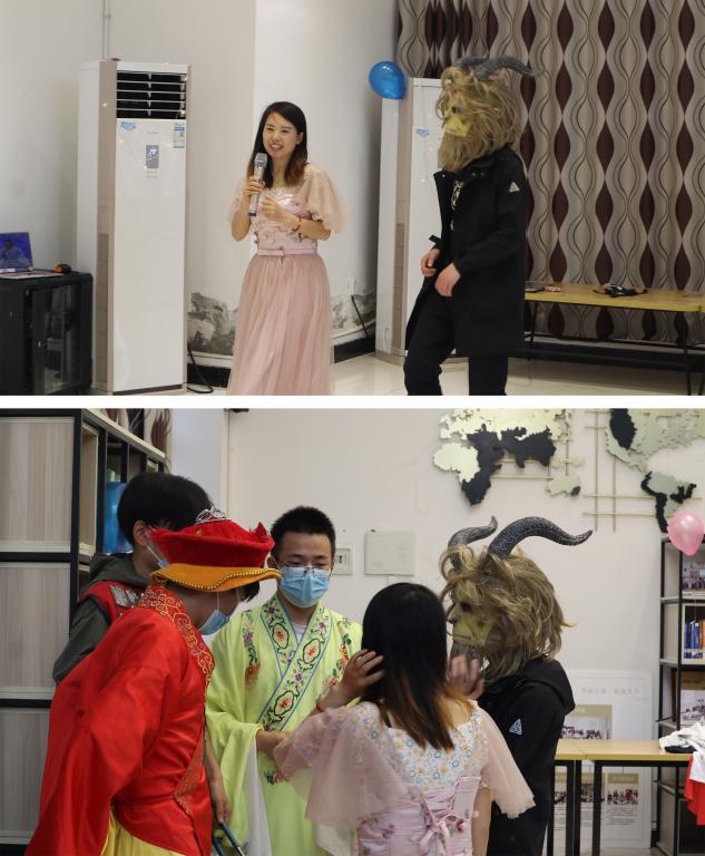随后美女与野兽的爱情、两位战士拯救学生记者、魔法球等几个情景剧依次在舞台上进行了精彩表演,并且收获了全场的精彩掌声.表演完成之后,大家在外教Mike的带领下进行了英语绕口令练习,纠正同学们在表演戏剧时的口语错误。活动的最后,外教Mike带领大家再次以一曲歌舞为本次活动画上一个完美的句号;正如歌曲中的Say goodbye一样,活动在欢声笑语中落幕。