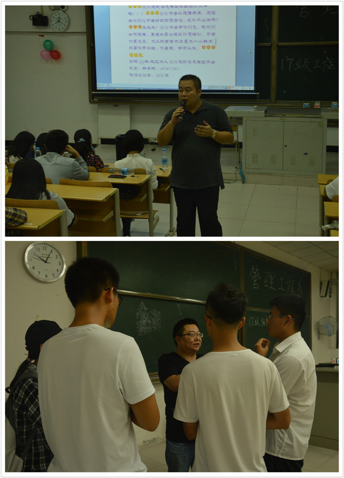 九月金桂拂面过,移通青春正当时。为使我系2017级新生对本专业有更全面的认识,实现更完满的4年专业学习、生活的提升,9月20日晚19:00和20:50,我系工程管理教研室及信息管理教研室联动学工办,分别在3103及2102教室举行了2017级新生专业交流会,新生辅导员及系部全体专业课教师参会,系主任林毅博士到会指导。