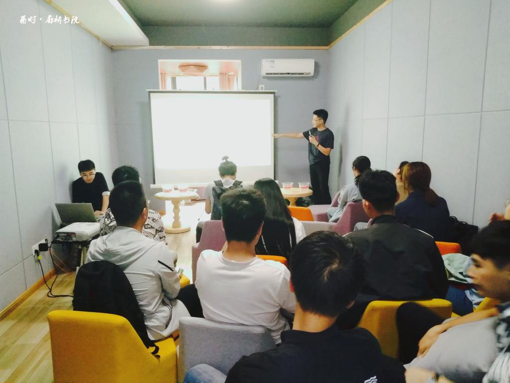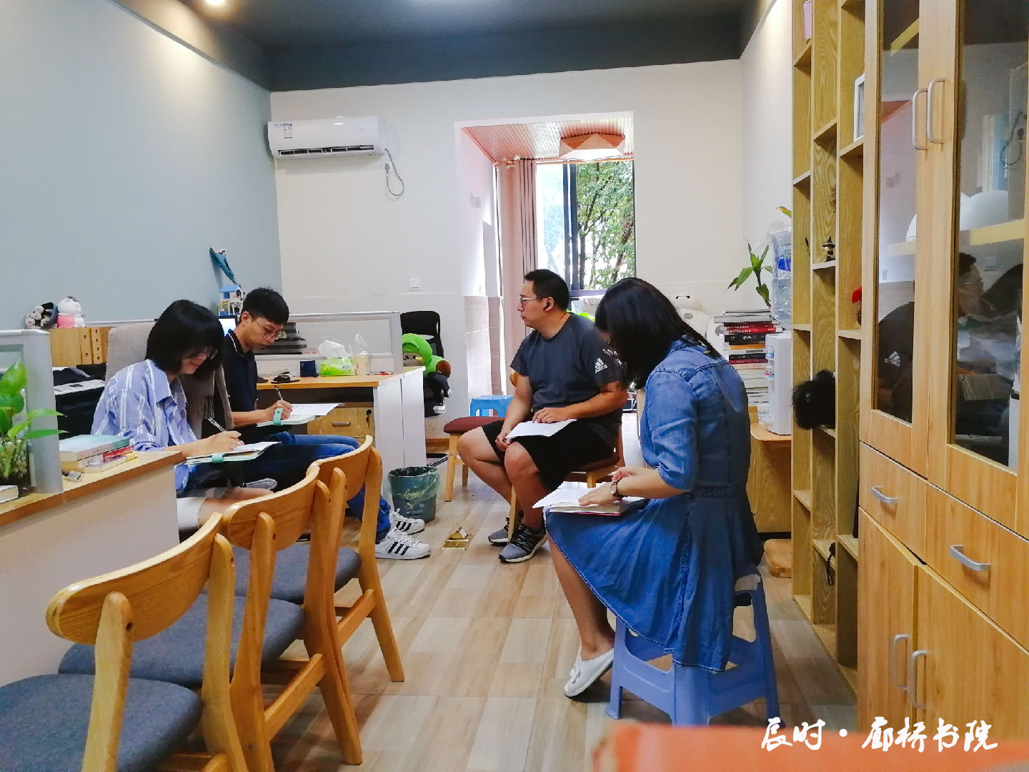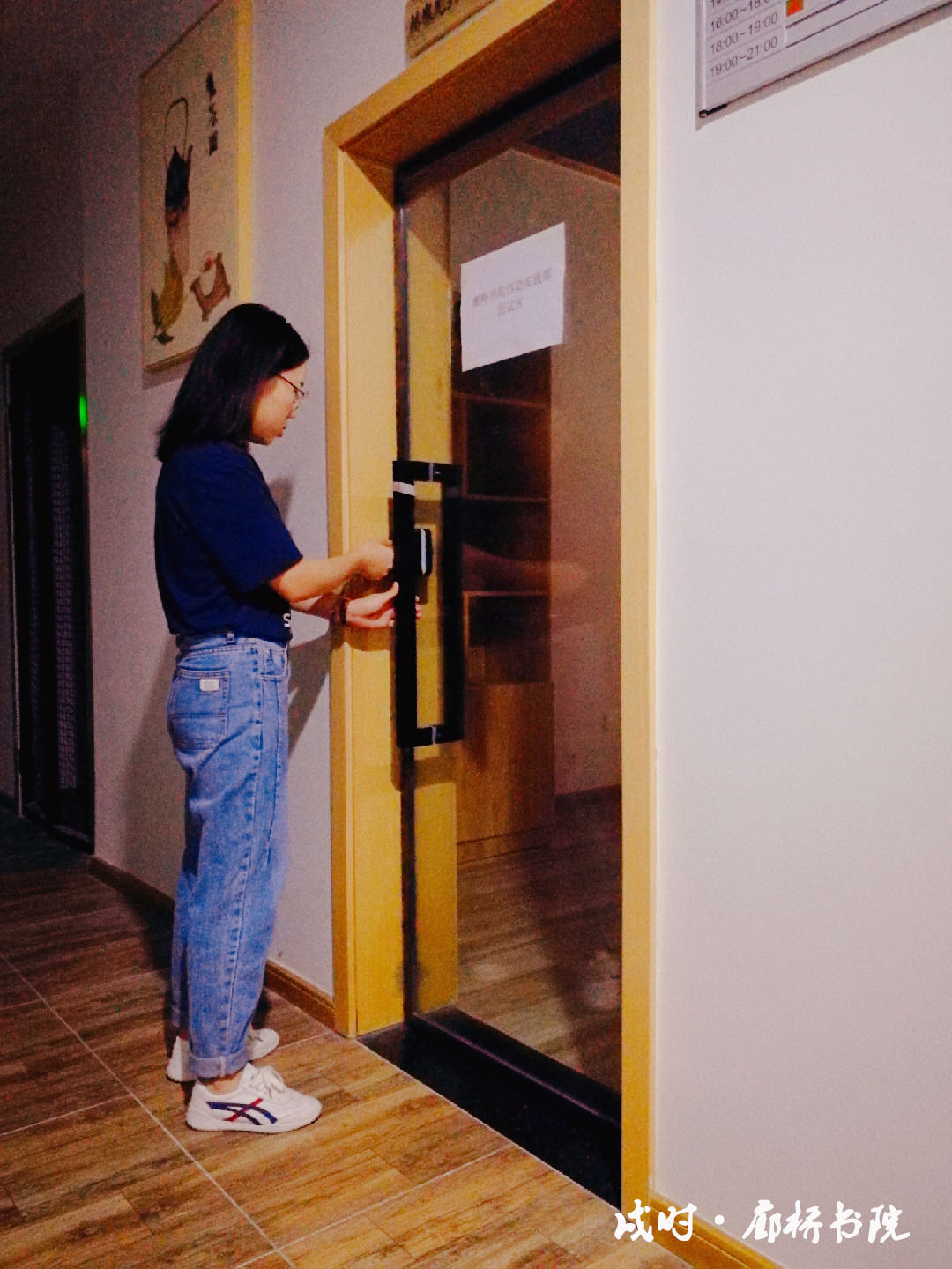 巡查,书院却喧闹,学生人来人往,桥墩儿活动室有一群人开着生日会;桥墩儿咖啡屋三两人正在交流;树洞学堂有坐满了上自习的学生;桥墩儿影音房有七八人看着《肖生克的救赎》,教师们巡视着书院的每个角落,确保一切喧闹中在“平静”中安然度过。