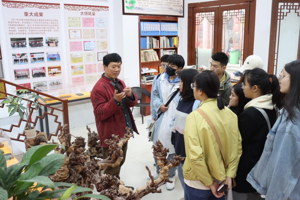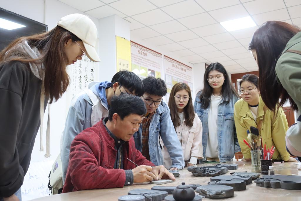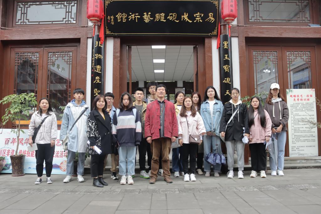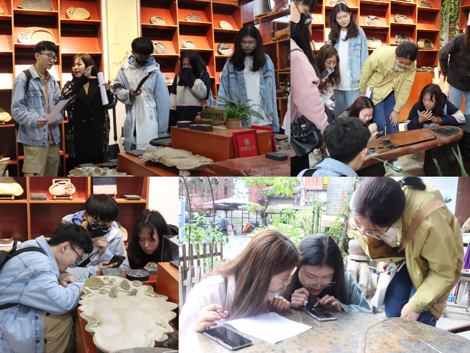 为深入开展中华优秀传统文化进校园活动,构建课堂教育与社会实践等多位一体的教育平台。3月20日上午,我校地域文化与城市发展研究院非物质文化遗产研究中心教师李凤勤带领非遗传习班学生来到合川区文峰古街“易宗成砚雕艺术体验馆”,对2007年入选重庆市级非遗代表作项目名录的合川峡砚代表性传承人易宗成进行了深入交流与互动学习,引导学生在充分继承合川峡砚制作技艺文化内涵和历史沿革的基础上,培养学生对传统文化纹样的运用创新与实践能力。