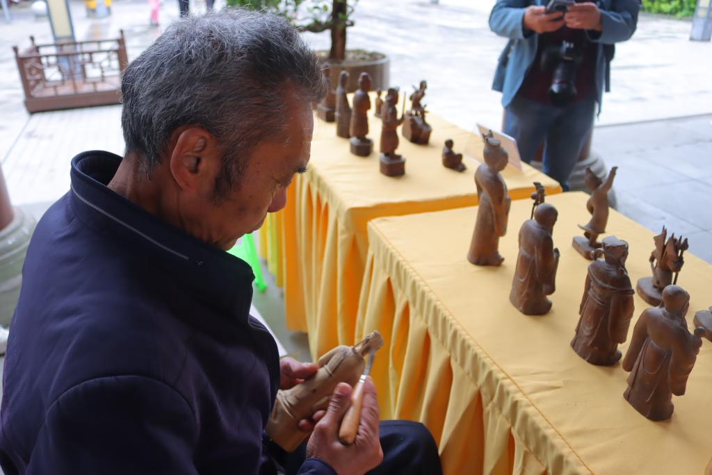 砚石是大自然给予的颜色,用创新设计图案来呈现砚台的奇特魅力。 每一种图案,每一种花纹都有不同的寓意,峡砚因其根据石材造型颜色,雕法各有不同像石色大多为黑色,还有少量的黄褐色还有罗纹类,雕刻峡砚有浅雕,深雕,镂空雕、浮雕,因此每块作品都是“独一无二”的。同学们分为四个小组,分别从材料、图案、图案寓意等几方面展开深入调研。此外,同学们还参观了合川区其它传统技艺,如纸扎、木雕、泥塑等。其中周继伍老师的木雕以各年代的人物为素材来雕刻,用红木作为雕刻材料,呈现出来的人物栩栩如生。