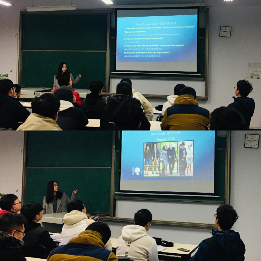 北黑森应用技术大学成立于1994年,所颁发的文凭均得到中德双方政府的承认。其开设四个传统学科:企业管理,经济法,机械电子工程和媒体经济学&媒体管理。针对其笔试和面试,中德学院双语教研室的德语工科专业课老师王瑞老师和德语商科专业课老师陈攀老师,分别为学生举办了2场集合笔试和面试的考前复习和培训。