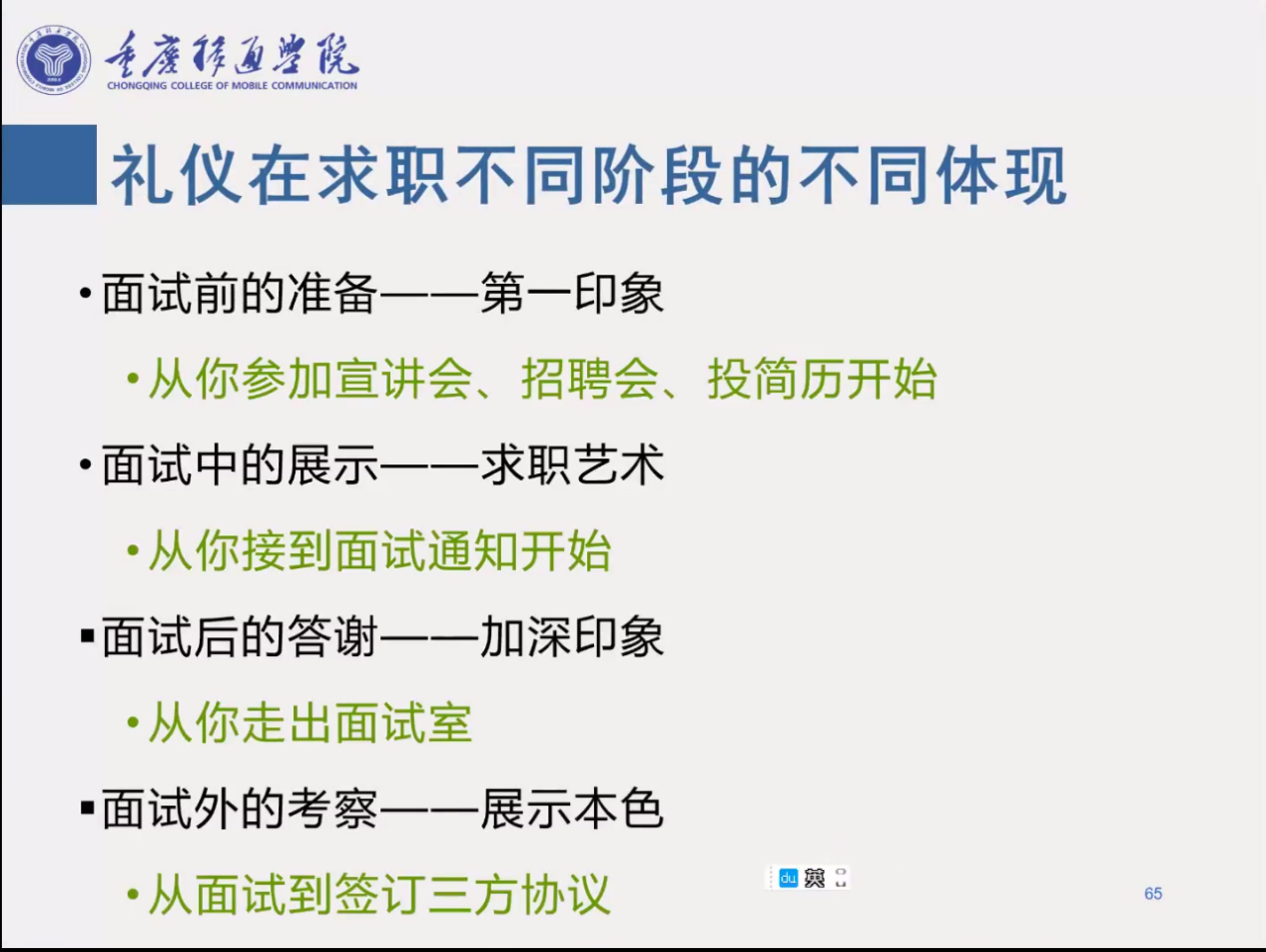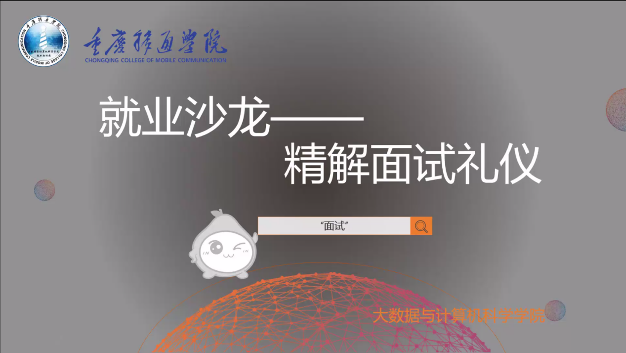 为提高同学们在面试技巧,由就业创业指导与服务中心主办、大数据与计算机科学学院承办的精解面试礼仪主题活动于2022年5月11日星期三中午12:30在腾讯会议进行。