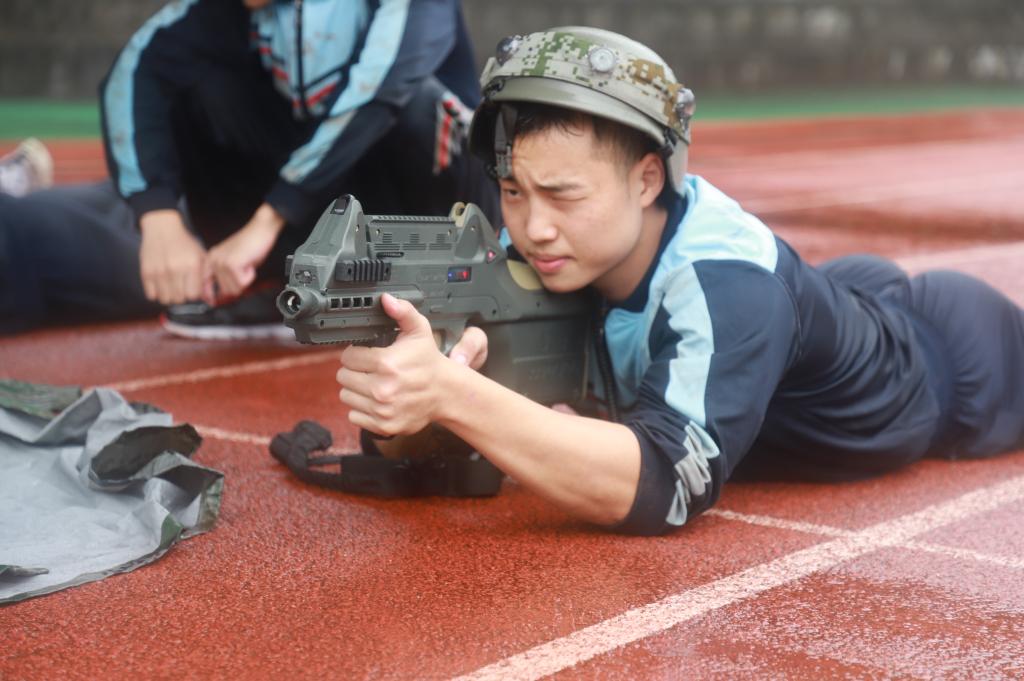 目标一致,采用三姿齐射标靶。参赛选手们在南校区运动场进行射击,分别采用立姿、跪姿、卧姿三种不同的据枪姿势射击目标,全员齐力迎接挑战。