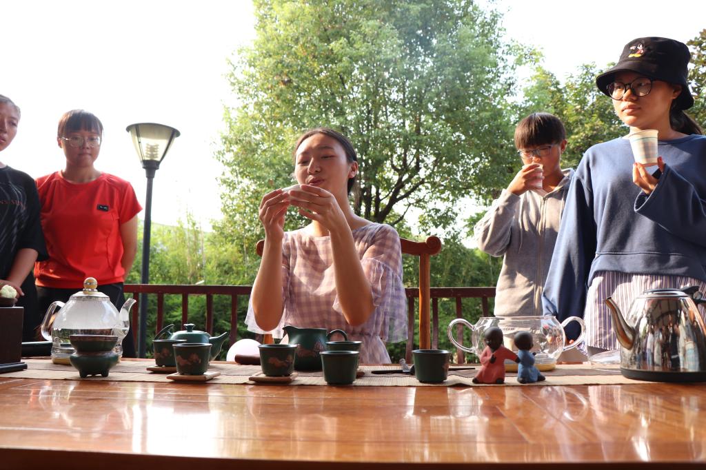 研究员们饮茶诵诗,礼射投壶,举手投足间仿佛一位位士大夫,而这北山也成了那包含风雅之地。活动尾声,研究员们开展了以北山斋非物质文化遗产传习基地的“重阳寻宝”活动,考验研究员们的团队精神,研究员们一起积极分析路线、讨论地点,共同摸索,一点点寻找着那些存于叶间花底且散发出迷人芳香的香包。这香包仿佛来自那遥远的古时,绣娘点点的飞针腾挪,使那一花一叶像是在随风飘摇呢。就这样,在丰富多彩的活动中,使大家渐渐地从陌生到熟悉,从一言不发到谈笑风生,活跃于非遗大家庭中。