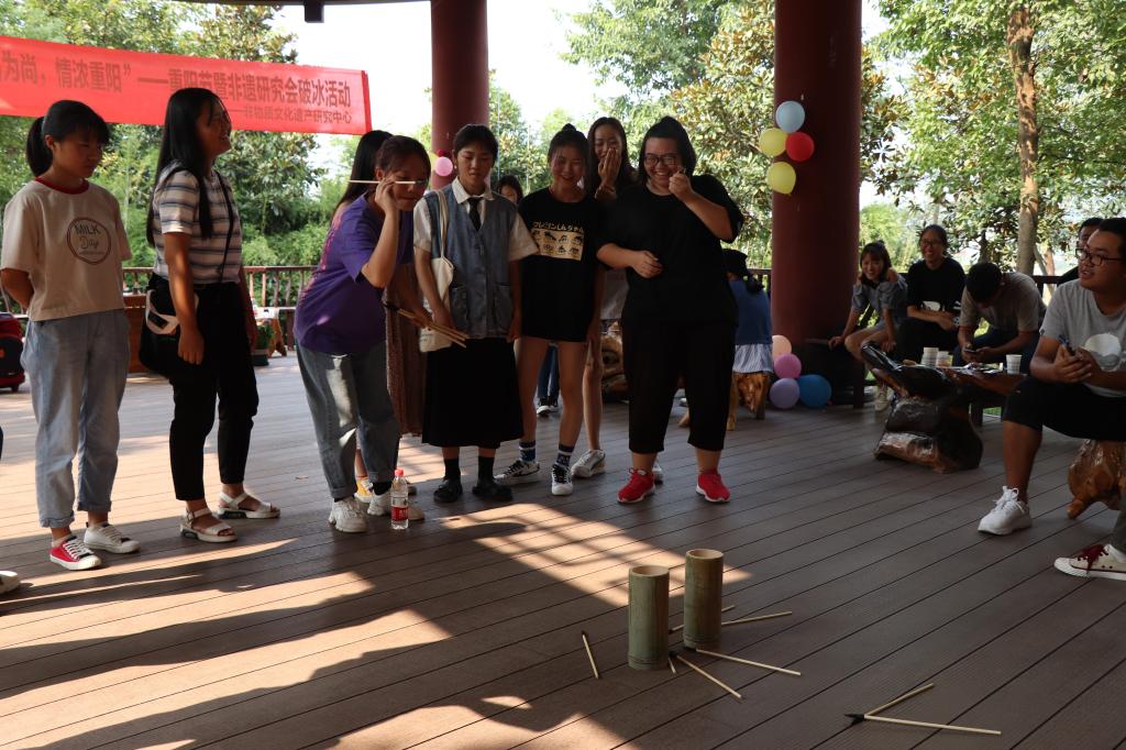 重阳节是中国的传统节日之一,又称为“踏秋”,人们会在这个节日里登高祈福、秋游赏菊。作为一个非遗人,中国的每一个传统节日都应该去了解。活动伊始,通过一些关于重阳佳节的小游戏拉开了序幕,使每位研究员都能亲身体验一把古人的宴会之乐。