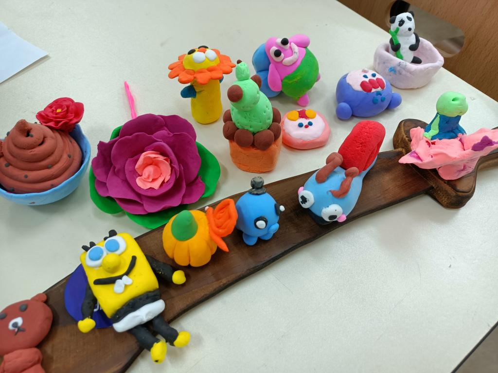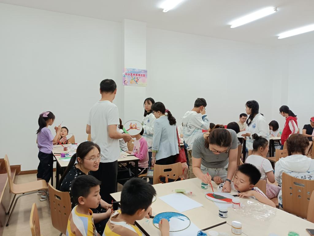 最后来到“小小艺术家体验区”,在志愿者们的帮助下,家长孩子齐上阵,从构思到配色,循序渐进,完成了一幅幅绚丽多彩的扇子画作和一个个生动可爱的粘土作品。制作完成后,不少小朋友表示要将自己的作品送给最爱的爸爸妈妈。