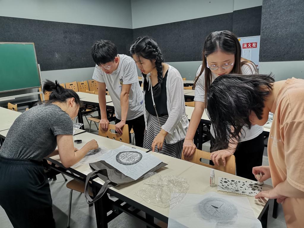 “瓦当拓印体验区”志愿者给小朋友详解讲解了瓦当和拓片的相关知识,在带领小朋友们参观完博物馆展柜中陈列的瓦当后,就拓印方法步骤向小朋友们进行了详细的介绍,随后带领小朋友亲身体验瓦当拓印。在动手的过程中,小朋友们虽然都是第一次接触拓印,可大家操作起来却认真专注,个个都做得有模有样。瓦当拓印让小朋友们在“触摸式”体验活动中感知古老技艺文化,充满了实践乐趣和文化意义。在了解中华传统文化的同时,制作属于自己的瓦当拓印作品。为了让志愿者能够更好的带领小朋友参与这项体验活动,地域文化与城市发展研究院的罗晓霞老师还专门提前给志愿者做了培训。