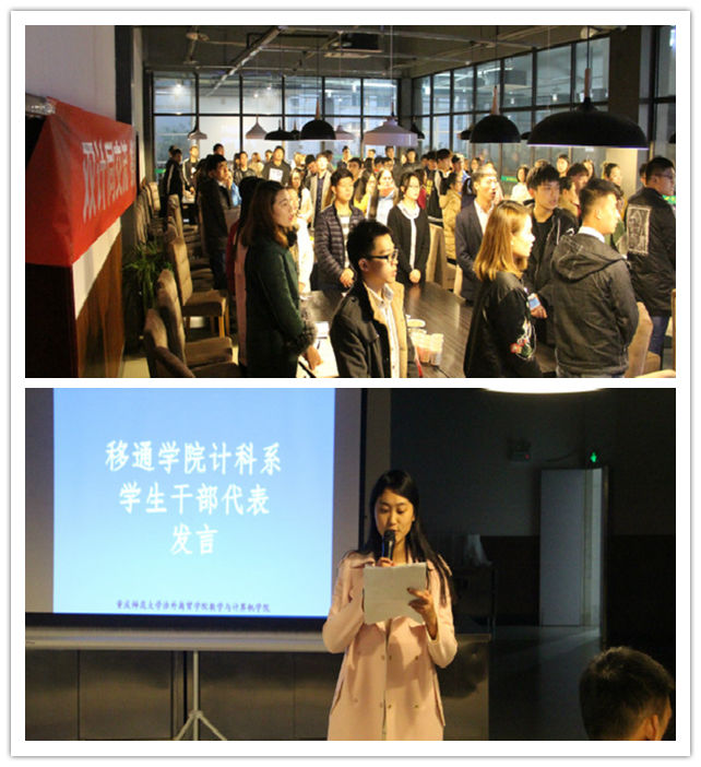 交流会初始,全体齐唱了共青团团歌,加深了计算机科学系与数学与计算机学院之间的感情。然后,涉外数学与计算机学院团总支副书记唐雅露发言,就数计学院团总支工作进行了深入剖析。