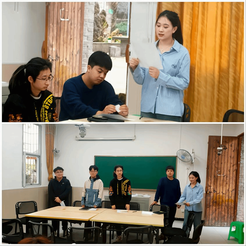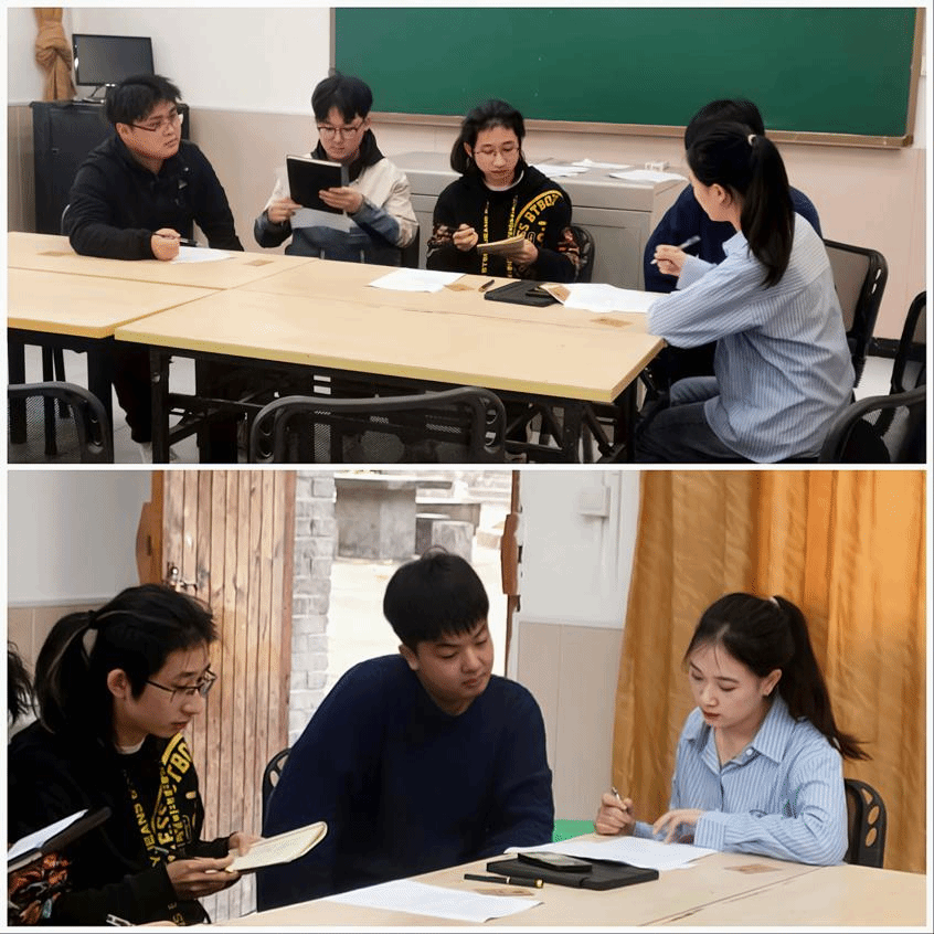 活动伊始,5名面试者进入候场室,依次抽取对应的号码牌,在工作人员的带领下进入面试间。随着主持人的开场语毕,面试者阅读材料并思考案例。他们各抒己见,表现不一,有的沉着冷静,有的言辞犀利……甚至在时间掌控,节奏掌握方面也各有不同。其间,3号考生袁楷琳提及的“依据最大限度的求援与存活”标准令考官频频点头。