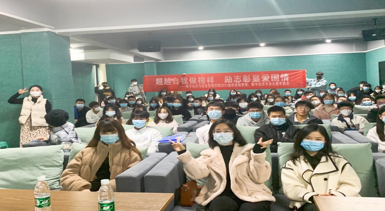 习近平总书记说:“青年是整个社会力量中最积极,最有生气的力量,国家的希望在青年,民族的希望在青年。”为培养学生超越自我的奋斗精神,加强学生思想政治建设,弘扬爱国主义情怀。11月16日至11月18日,数字经济与信息管理学院2021级数字经济、供应链管理专业各班级陆续开展“榜样的力量”专题宣讲会,11月19日15:00,各班于爱莲书院多功能影音室联合开展“超越自我做榜样,励志彰显爱国情”主题年级会。