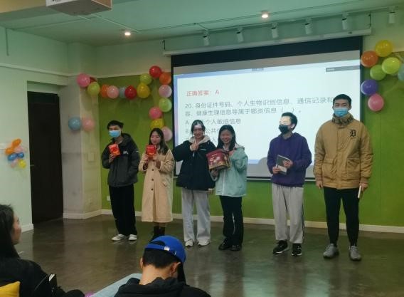 以“戏”涨识,书题箴言。年级会进行时,在“抱一抱”的游戏当中,七个班级每班两人鏖战三轮,最终四名同学笑到最后,获得胜利;同学们热情高涨,进行网络安全个人有奖竞猜比赛和团体有奖竞猜比赛,大家越战越勇,最终大数据管理与应用6班赢得第一名,带走了大家心心念念的零食大礼包。通过一系列网络知识竞赛与游戏,不仅提高了学生防范网络诈骗意识,还增强了学生网络安全防范意识。让同学们清楚地认识到网络上存在的各种安全隐患,学会在虚拟的网络世界在中保护自己的权益。