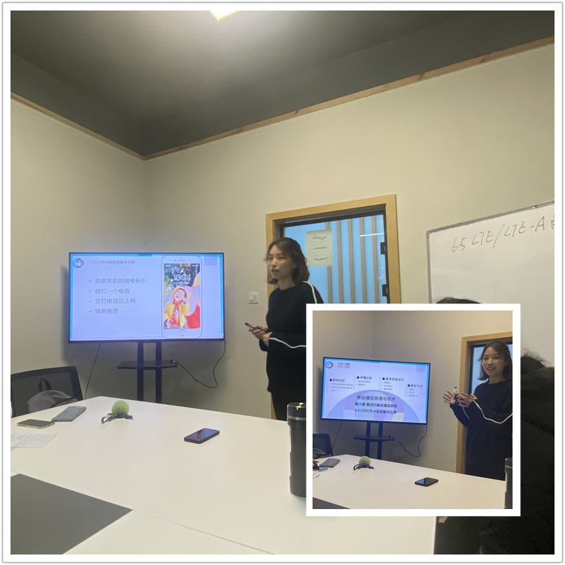 随后进行讲课比赛的是喻婷老师,她以《移动通信原理与技术》这门课程中的LTE/LTE-A语音解决方案作为本次比赛的内容。喻老师借助于PPT向大家进行说课,说课内容丰富,目标明确,分析全面,整个设计思路清晰。喻老师的比赛内容以非常有趣且贴近生活的案例进行互动引入,活跃了比赛现场的氛围,让大家更愿意更有兴趣进行接下来的学习。整个授课,喻老师目标明确且条理清晰,语速适当,用一个接一个的小疑问来带领大家不断学习三个语音解决方案,并分析每种方案的利弊,简要阐述了运营商实际使用的情况。