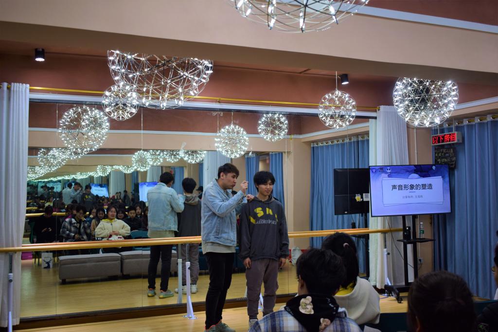 王老师是电影专业表演创作、戏剧导演出身,极好地充实了北山书院导师沙龙师资库力量,在线下的栏目讲解和录制的过程中,王老师由提问同学们对表演的认知引入话题,进而用贴切实际的比喻诠释了表演的概念,通过内外部的动作示范让同学们深刻感知了声音形象的重要性。