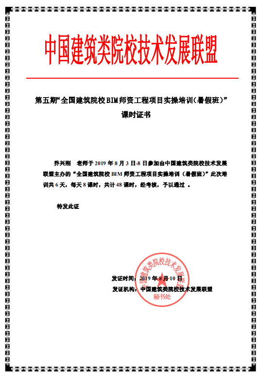 经过本次分享会,工程管理教研室全体教师更加确信,在授课中将专业知识与行业动态对接,是引导学生学习的有效途径。经过本次暑期培训班的学习及提升,5位教师均通过测评,获得了相应证书,在自身教学技能提升的同时,也能更好地指导学生在相关大赛中,以赛促学,以学促专业。