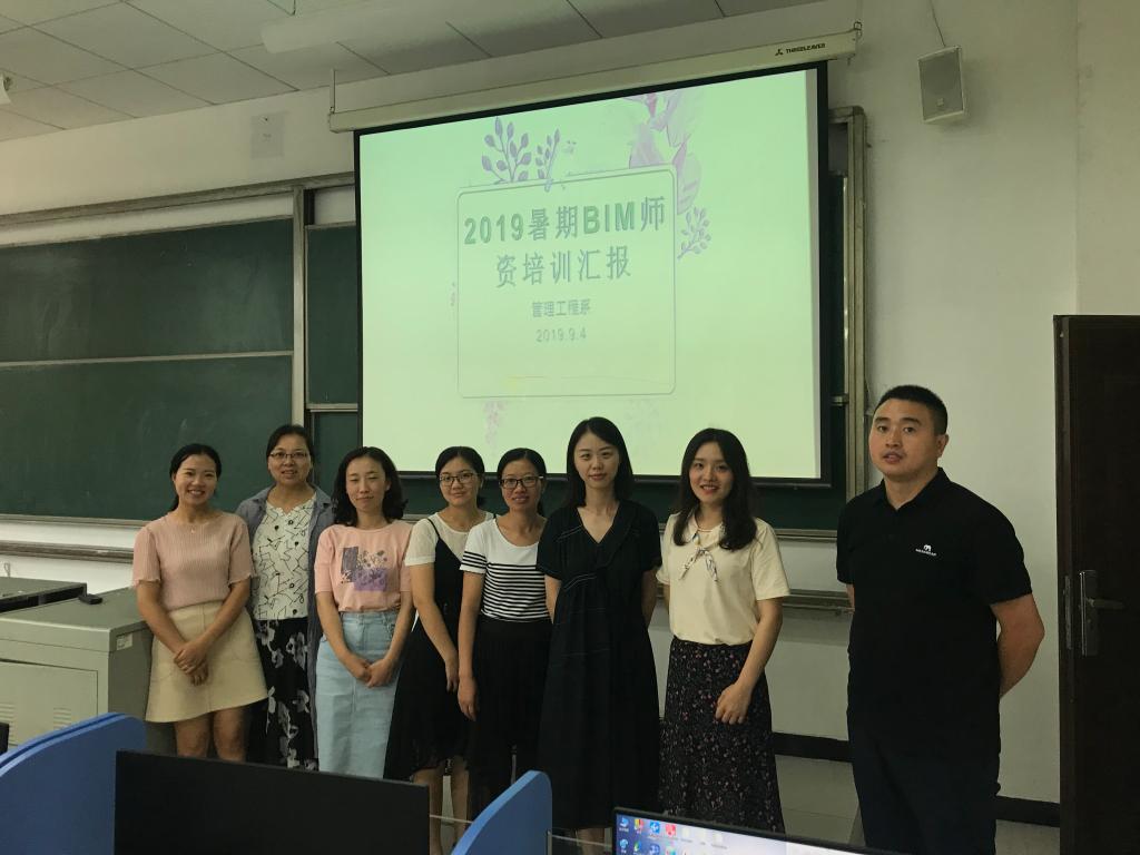 为进一步提高我校工程管理专业教师BIM应用技能水平,加强BIM师资队伍建设,7月19日-8月11日,管理工程系工程管理教研室徐桂霄、陈明燕、张红、乔兴刚、周洪艳5位教师,应邀参加了2019年全国高等院校BIM应用技能暑期师资培训班、全国建筑院校BIM师资工程项目实操培训、第十一届全国高等院校“斯维尔杯”BIM-CIM创新大赛暑期师资培训班,同时,在开学伊始,工程管理教研室全体教师在S2304听取了各位参培教师的汇报分享会,本次会议由工程管理教研室主任周梦娇副教授主持。