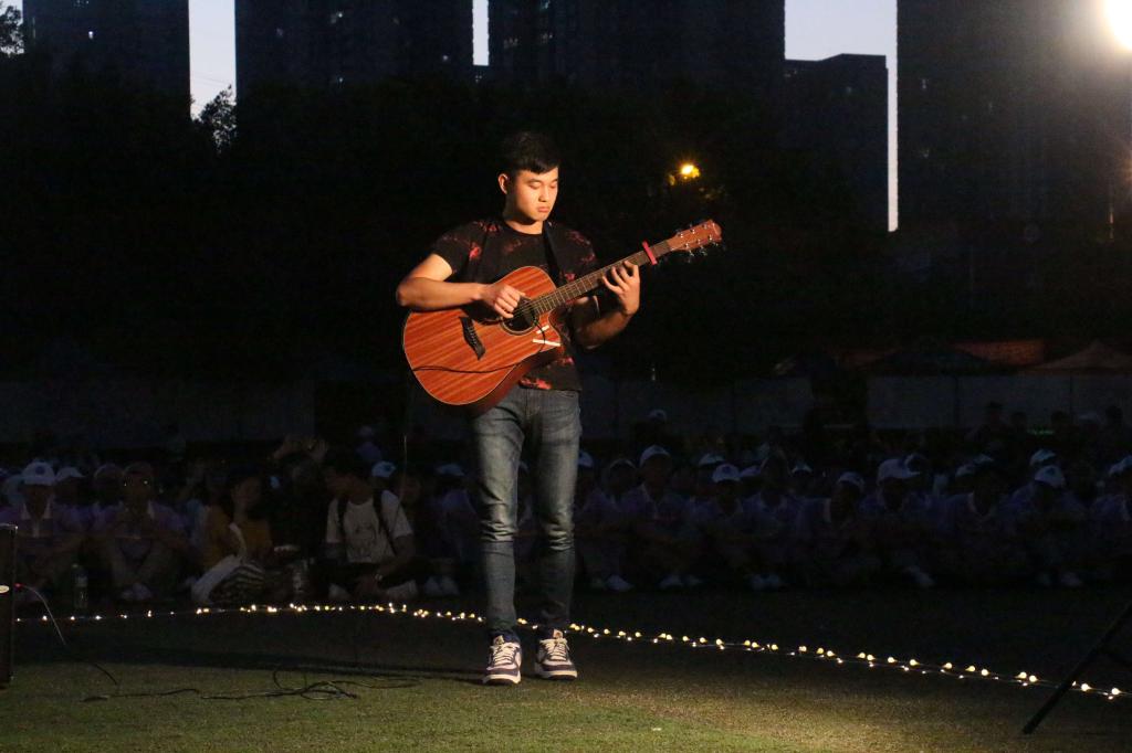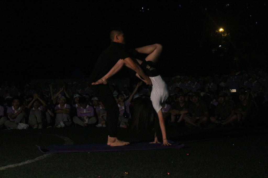 动感的舞蹈,欢快的音乐,大学生艺术团的开场舞让你感受到青春的无限魅力。动漫社的舞蹈《你最爱的人是谁》,让你眼前一亮,悠悠球的千变万化带给你视觉上的刺激;武道协会的《武道之魂》,瞬间燃爆全场,高技巧的“踢板”,“燃烧的双节棍”让在座的你感到热血沸腾,也想上去一试高下;瑜伽协会的《爱是永恒》,淋漓尽致的展现了性感与平衡的结合;手中的荧光棒轻轻挥舞着,伴随着手语社《夜空中最亮的星》,带给你最温暖的感动。紫精灵的吉他弹奏,让你暂时忘却了军训的烦恼。一首歌曲唱出心中挚爱,一段舞跳出热血豪迈,一首诗谱写出果敢坚毅一路有你。是社团的火焰,照亮军训的天空,不论是念家的乡愁还是对大学生活刚开始的不适应,在此刻都已逝去。