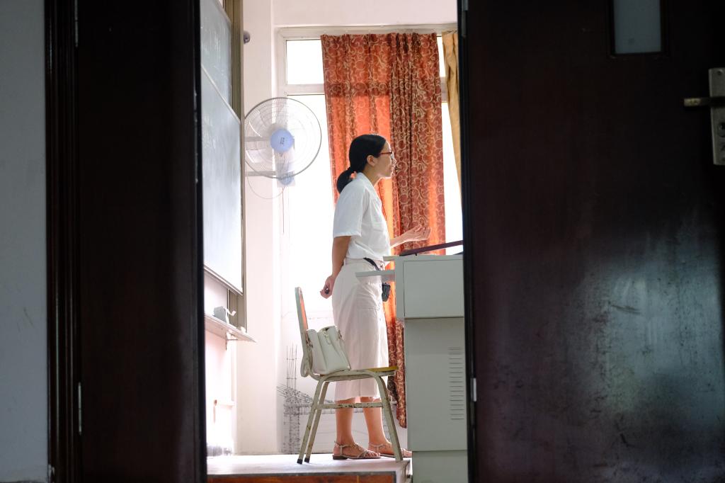 一节课程45分钟,老师们连续站两节课,从未抱怨。他们的身姿如同山中竹林,清秀俊逸,高风亮节。