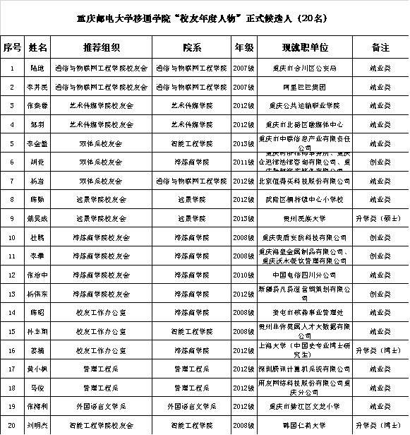 经过老师们的严密商讨之后,最终产生出20位首届“校友年度人物”正式候选人。