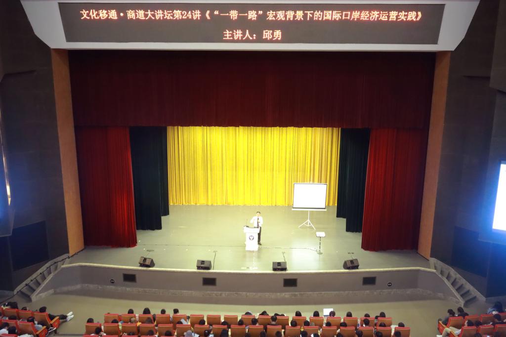10月11日晚上7点,重庆市沙坪坝区的商务委员会副主任邱勇教授做客“文化移通—商道大讲坛第24讲”,在缤果大剧院开展《“一带一路”宏观背景下的国际口岸经济运营实践》为题的讲座。