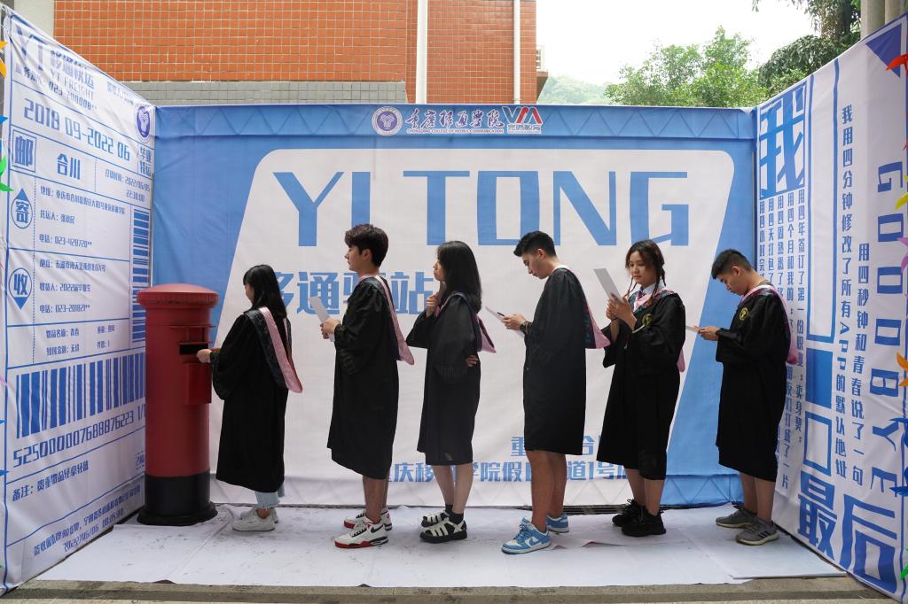 展馆现场,还有由40名优秀毕业生组合而成的笑脸墙,用微笑彰显“移通由我‘罩’耀”的自豪与骄傲,别都书院也为毕业生们定制了印有“移通永远罩你”的专属口罩,学校与学生彼此守护、又互相引以为荣,形成双向奔赴;“我用四年时间熟悉了移通南北校区的每一处风景……最后我用四分钟修改了所有app的默认地址,用四秒钟和青春说了一句goodbye。”——青春是极其贵重的物品,务必轻拿轻放,“移通驿站”寄存的是青春时光,托运的是似锦前程;展馆终点处,老师们的经典语录“我再说最后一句啊”跃然眼中, “你走了,我不来送你,你脚下的路是我用目光铺成的”、“用爱生活,你会使自己幸福!用爱工作,你会使很多人幸福!”、“荷叶田田春方尽,暗香朵朵夏夜长。双栀一别天涯客,他日归来仍少年。”等百余句不舍的别离和殷切的期望,诉说的是浓浓师生情谊。