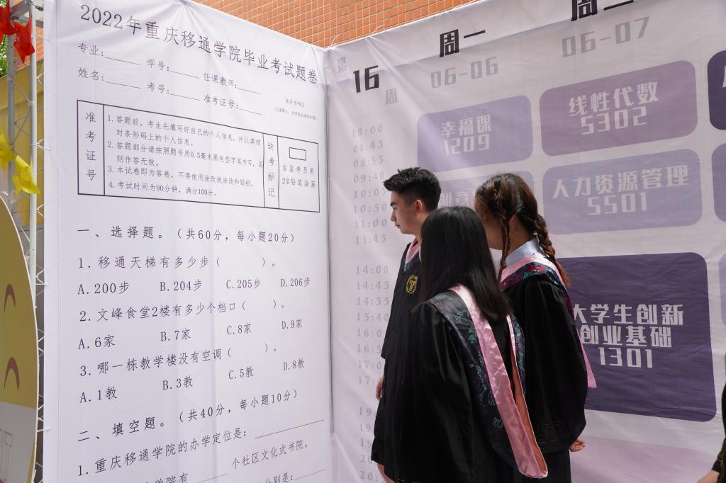 由别都书院负责打造的“盛夏留年”毕业.拾忆馆室外馆将2022届学子大学四年生活、学习印迹,以“完满小票”、“亚洲最大烧烤架”、“移通永远‘罩’你”、“毕业考试答卷”、“教师赠言” 、“移通驿站”等7个展点创意呈现,同时也为7176名毕业学子打造“我们毕业了”全员姓名墙,以“家人”之名为毕业生打造青春专属仪式感,引发了校内师生高度关注。