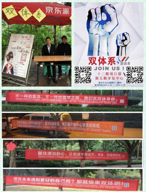 为了更好地让全院师生了解双体系,同时积极参与新学员的选拔,此次招新在传统宣传模式基础上加入新媒体宣传模式,走进双体系变得更加直接和快捷,既不失郑重又符合90后的个性特点。微信平台的良好体验性、直播平台的良好互动性使双体系的形象进一步走进同学们心中。