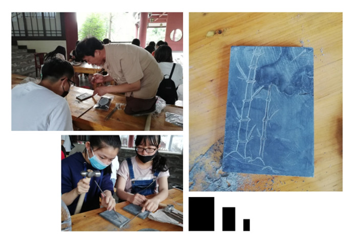 经过多次学习与指导,同学们的峡砚作品也初见雏形了,峡砚的最后一步是打磨抛光,而打磨也是一道非常耗时的工序,需要操作者有足够的耐心和认真的态度,以及具备熟练的打磨方法。同学们认真而又严肃的打磨峡砚过程的同时,也不禁感慨成品制作的不易和匠人的辛勤付出。