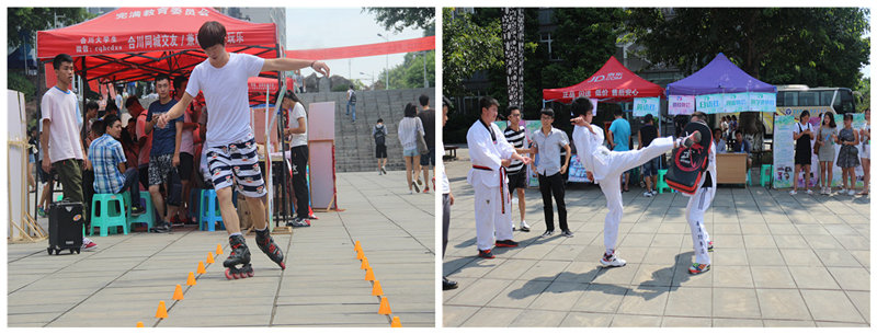 我们都在期待改变,一个陌生的环境,一个崭新的开始。而全校111个学生社团也在新的一学期来开序幕,全新的社团伴着更丰富的社团文化精髓,在新的征程上蓄力待发,等你来。民俗社在招新点高高挂出中国结,彰显中国民俗文化的魅力;茶艺社现场展现茶艺之道,展现中国茶道的博大精深;极限俱乐部高调摆出超大毛毛虫,体现社团的无限乐趣。社长们更顶着烈日在路上耐心地为每一位同学讲解,真挚地期待新一批“小鲜肉”的加入。