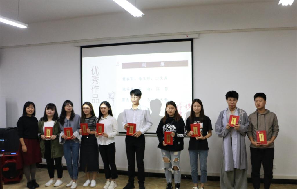 一直以来非物质文化遗产研究中心对研究员的发展都特别重视,不仅对非遗的相关知识进行了拓展讲演,还对非遗研究员们各个方面的发展进行规划。非物质文化遗产研究会讲究的是将知识与实践相结合,让大家在切身体会中感受到非物质文化的魅力,在日常生活中有意识地去传播和传承非遗文化。大会中,非物质文化遗产研究中心老师为一学年来工作表现突出的干部、干事办法了荣誉证书,以及对其中优秀结业作品的同学进行了表彰,表达了对研究员们的实践能力、知识能力的认可。