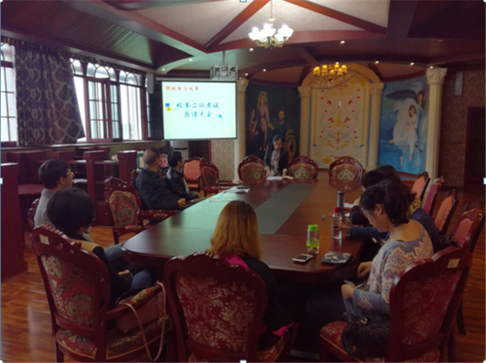 近日,我院2016级英语专业校本英语二级考试首次考试工作顺利收尾。10月11日下午,外语系英语专业教研室全体教师在英美村召开总结大会,回顾和总结一年来此项教学改革工作的历程和经验。