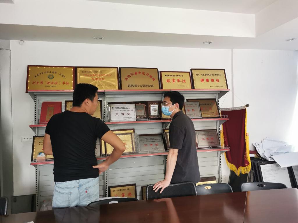 校长助理张平一行首先走访了位于合川区苏家街67号的重庆原创规划设计有限公司。黄海总经理向张平校长助理介绍了公司的情况:重庆原创规划设计有限公司成立于1992年2月,原为合川市规划勘测设计院有限责任公司。公司主要经营城乡规划、园林景观、文物保护规划、测绘等相关设计,同时从事项目策划、文化艺术项目运营、乡村振兴策划建设运营等。公司具有规划乙级、园林景观规划乙级、文物保护规划丙级、测绘丙级资质,是一家综合型的设计单位。其设计作品多次获得重庆市规划局、重庆市建委、重庆市园林局的优秀设计奖项,在重庆业界内有较高知名度。
