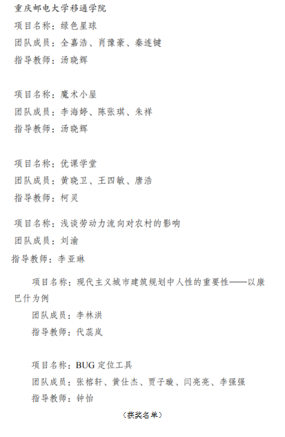 值得一提的是,获奖作品中,除历年报送的三大类作品外,由学生社团联合会主席团王江文、李白云天、曾昱锋三位同学报送的作品——《关于民办高校学生社团满意度的调查研究——以某民办高校为例》,属我校学生首次涉及完满教育方向的哲学社会科学类研究报告。
