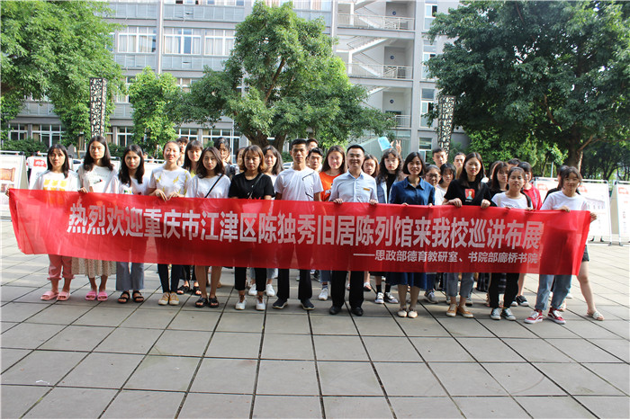 为贯彻落实习近平总书记在纪念五四运动一百周年大会上的讲话精神,引导广大青年学子了解五四历史、继承五四传统、弘扬五四精神,6月12日,我校特邀重庆市江津区陈独秀旧居陈列馆来校开展“风雷——纪念五四运动一百周年专题展”。此次活动由思政教学部德育教研室和书院部廊桥书院共同承办,思政教学部全体教师及140余名学生代表参加。